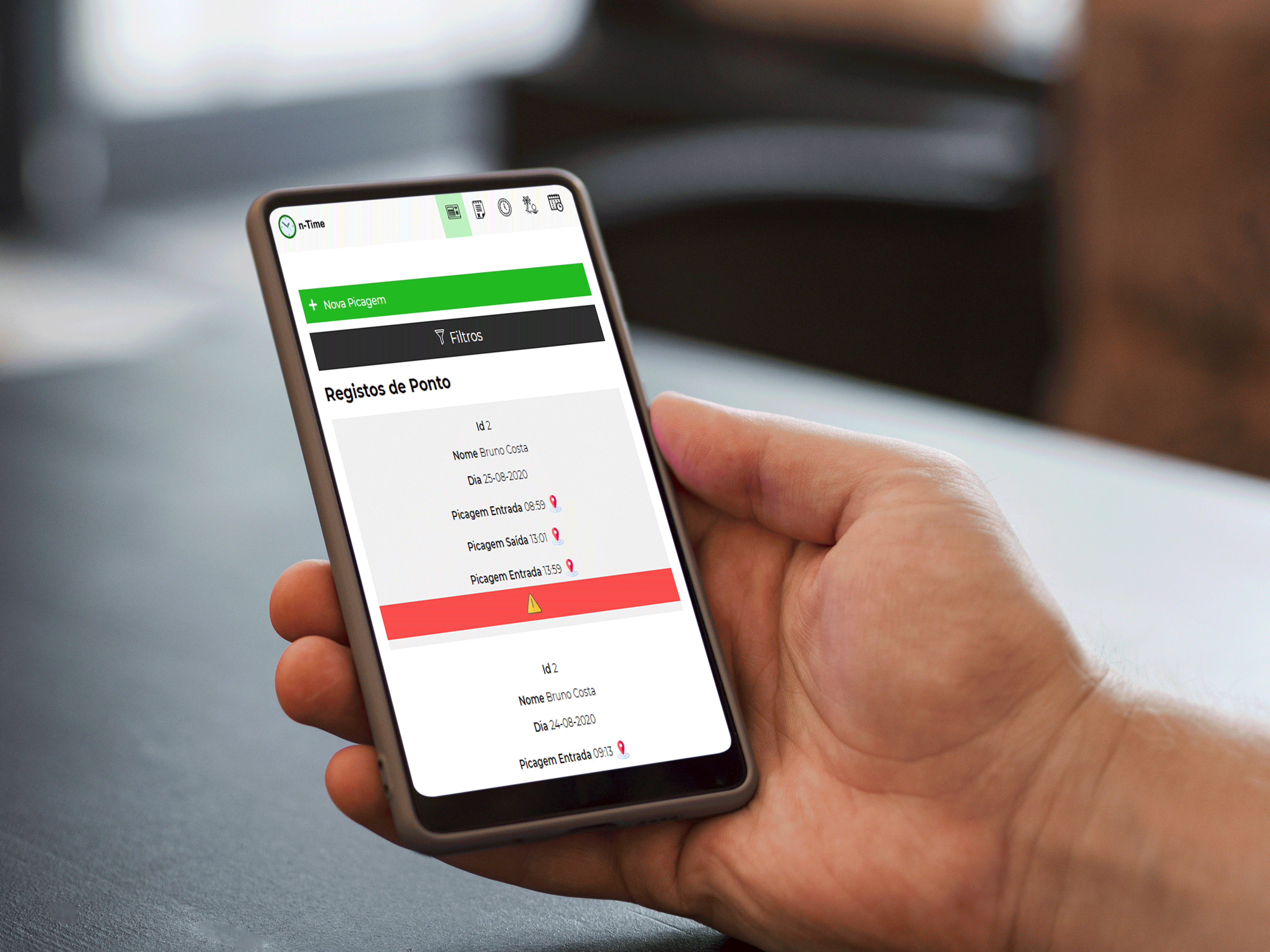 O n-time é um software multiplataforma de controlo de ponto, que permite às empresas gerir a assiduidade dos seus recursos humanos de forma simples e eficaz, quer o colaborador esteja nas instalações da empresa, em teletrabalho ou em mobilidade. Os registos de entrada e saída, pedidos e as aprovações podem ser realizados de forma remota, sendo a informação atualizada em tempo real.